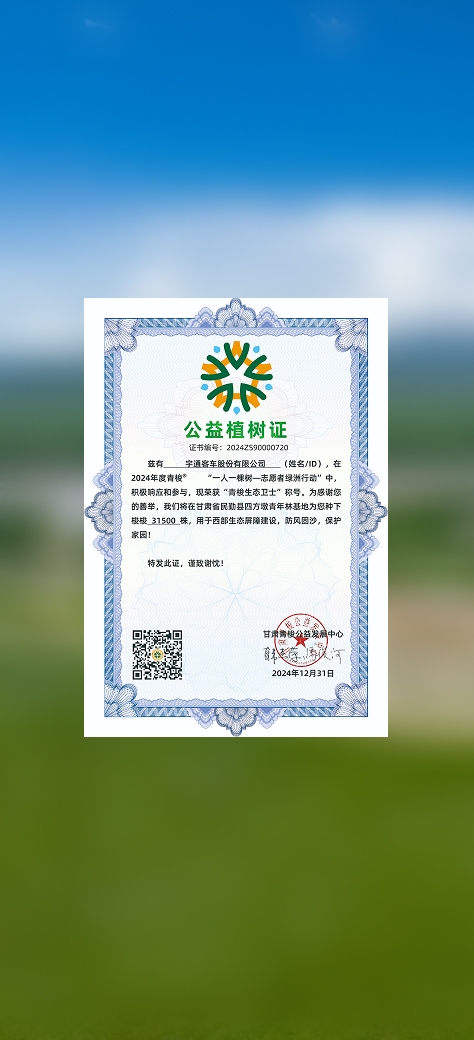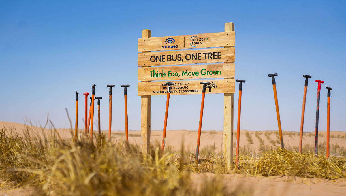 Den 22. april 2025 (Verdens miljødag) holdt Yutong et globalt lanseringsarrangement for Net Zero Forest-initiativet i det økologiske skogområdet Sifangdun i Minqin fylke, Wuwei by, Gansu-provinsen — der Kinas tredje største ørken Badain Jaran møter den fjerde største, Tengger. Yutongs kunder og medierepresentanter fra hele verden deltok i aktiviteter som bygging av gressgitter og planting av Haloxylon ammodendron-trær, og bidro dermed sammen til global bærekraftinnsats.
