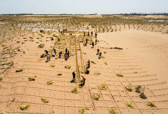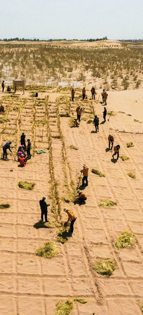 For å bekjempe tørke og ørkendannelse i nordvestlige regioner, gjennomføres skogplantingsprosjekter for å stabilisere sanden og bygge økologiske barrierer.