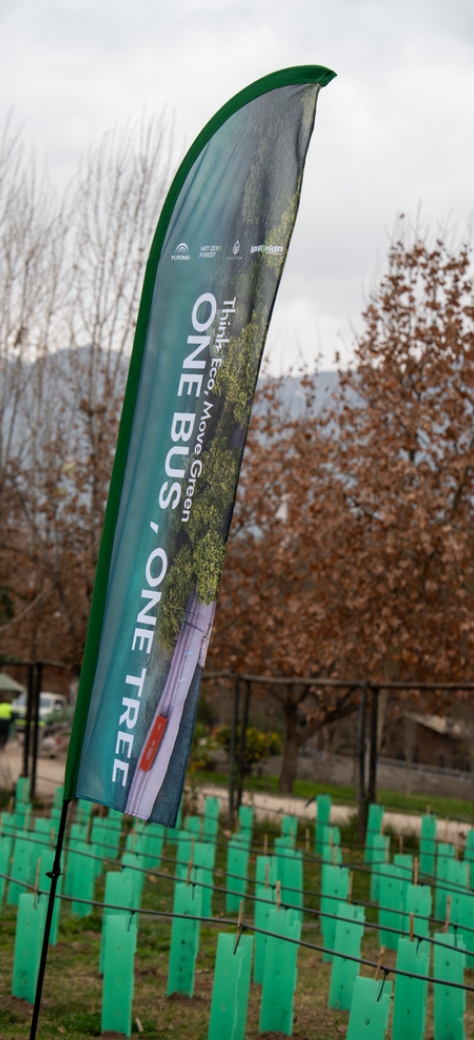Yutong arrangerte en treplantingsaktivitet i Quebrada de Macul bypark i Santiago, Chile, der 1 000 innfødte trær ble plantet som en del av det pågående arbeidet med å restaurere lokale økosystemer.